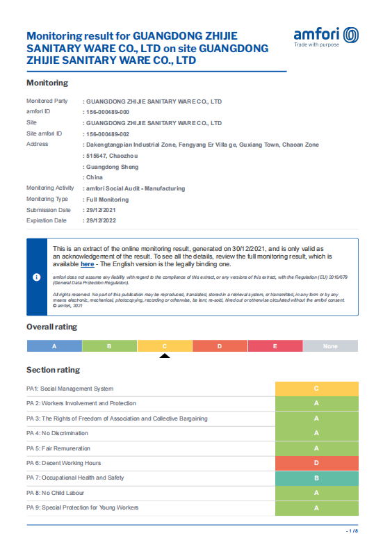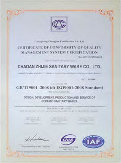 ZHIJIE has got the lS09001: 2015 certificate, BSCl,ICS andSEDEX factory audits,our products have got the Australia quality certificate (Watermark), CUPC for north America and CE certificate for European countries